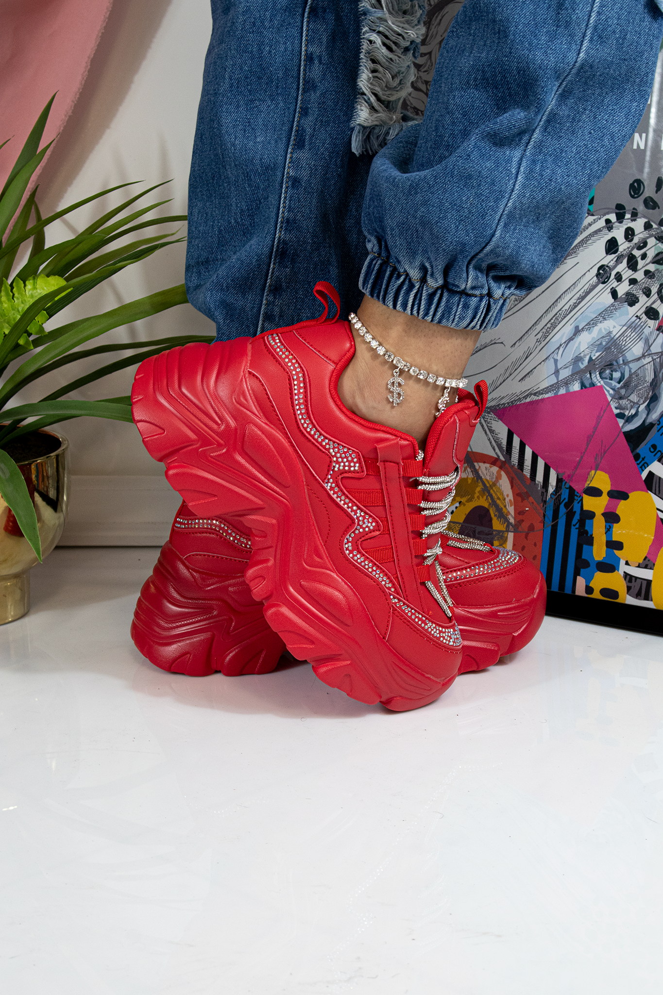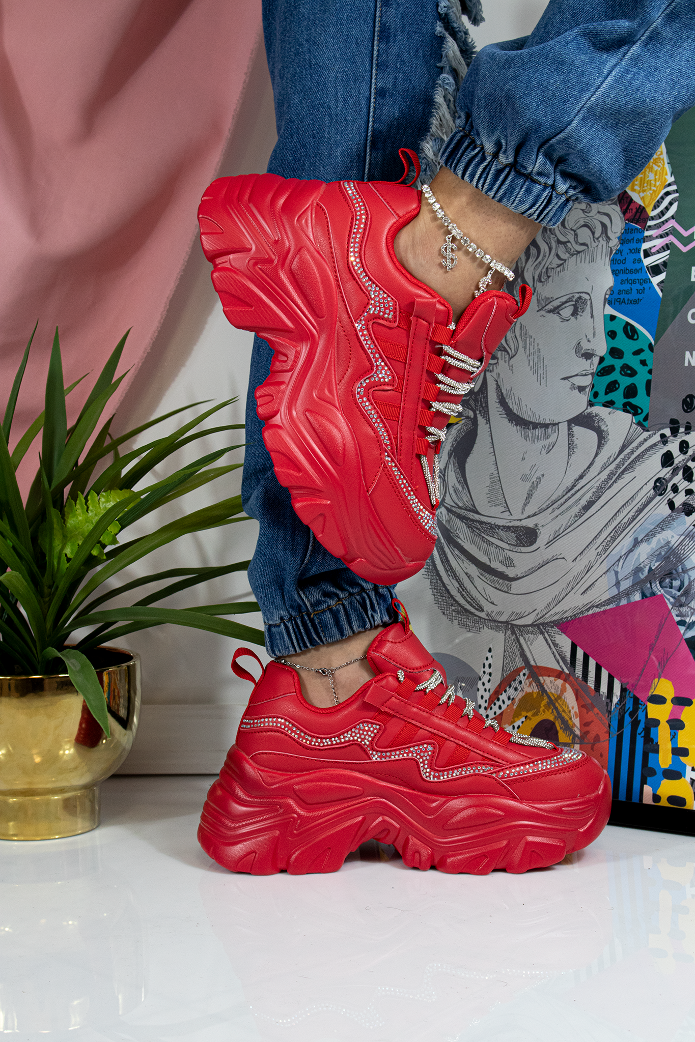 Lucen espectacularmente bellos los tenis?BILLIE | RED, con brillos y diferentes texturas, pero sobre todo una gran plataforma para estilizar más tu figura.??Qué esperas para tenerlos contigo!.