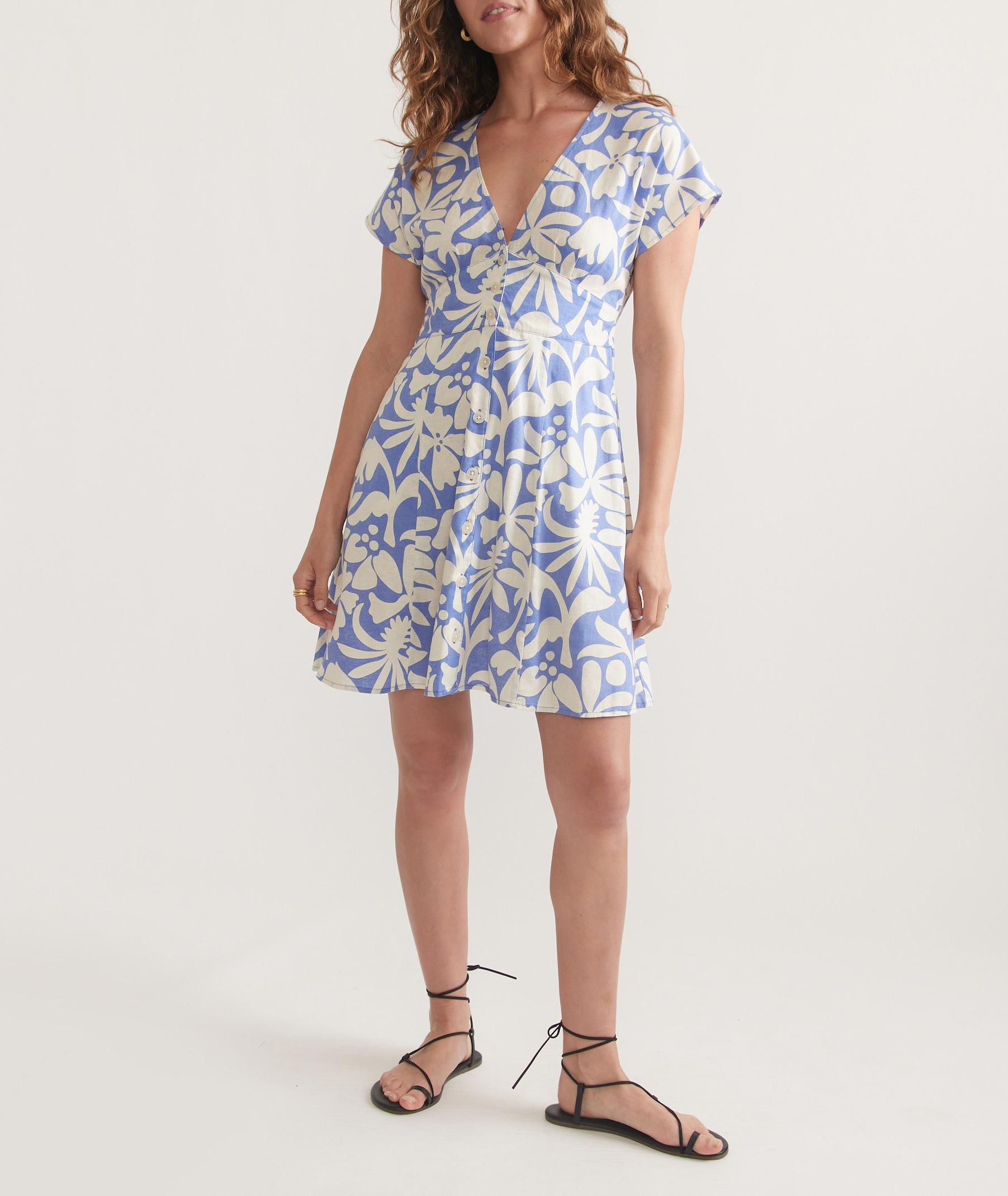 Blue Floral Print Short Dress