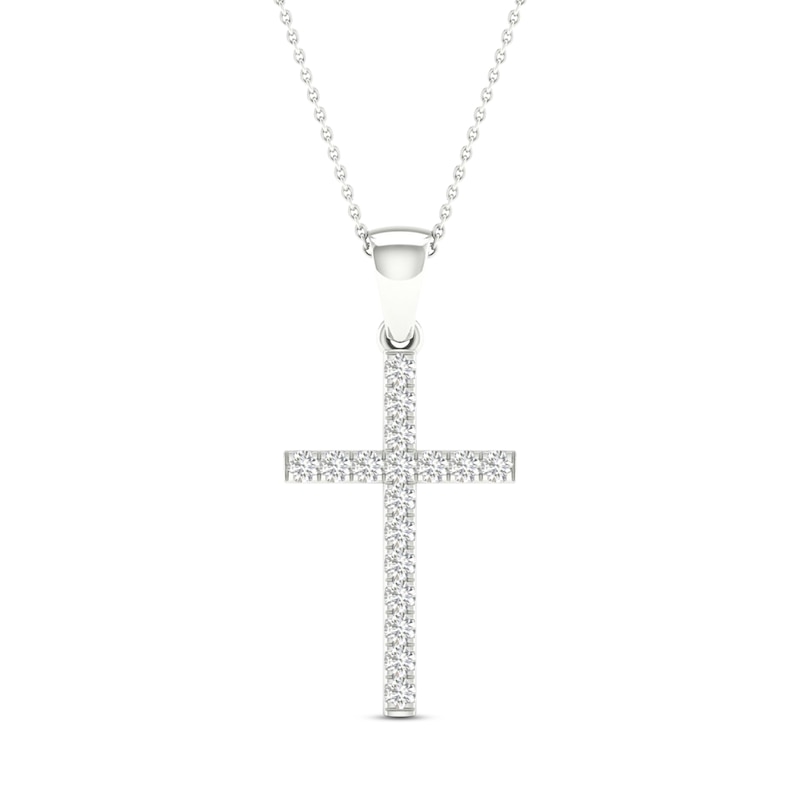 Diamond Cross Necklace 1/5 ct tw Round-Cut Sterling Silver 18"