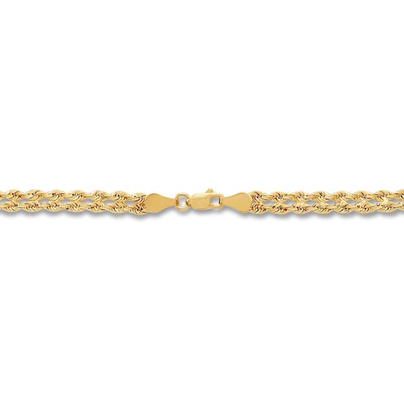 A jewelry box must-have, this double hollow rope chain necklace features a two-in-one design fashioned in 10K yellow gold. The necklace measures 18 inches and secures with a lobster clasp.