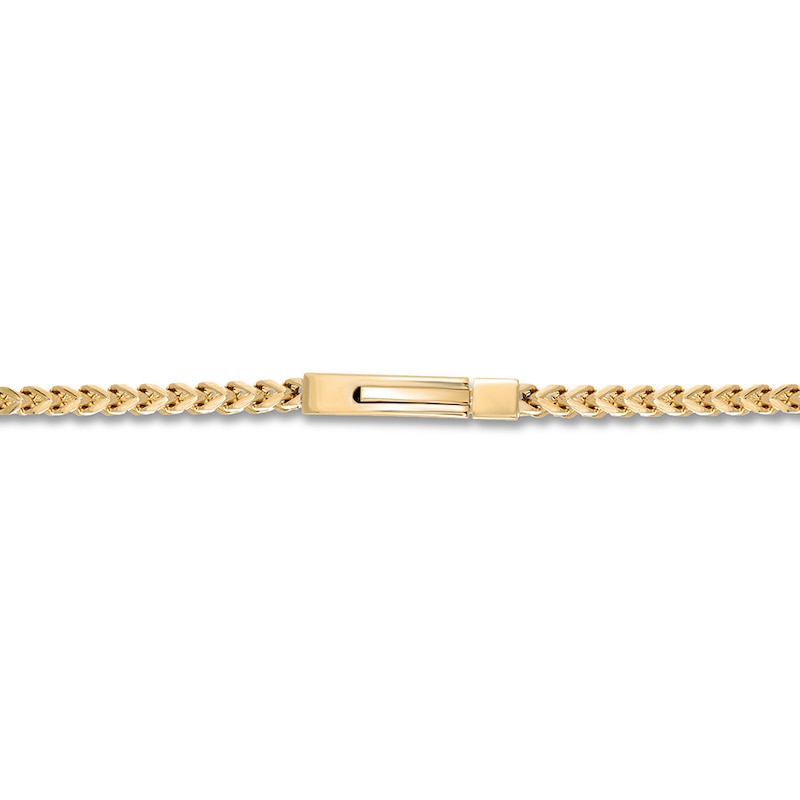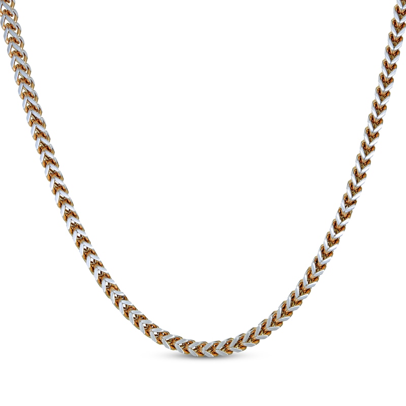 This handsome 24-inch foxtail chain necklace is crafted of stainless steel with yellow ion-plating and fastens with a snap-lock clasp.
