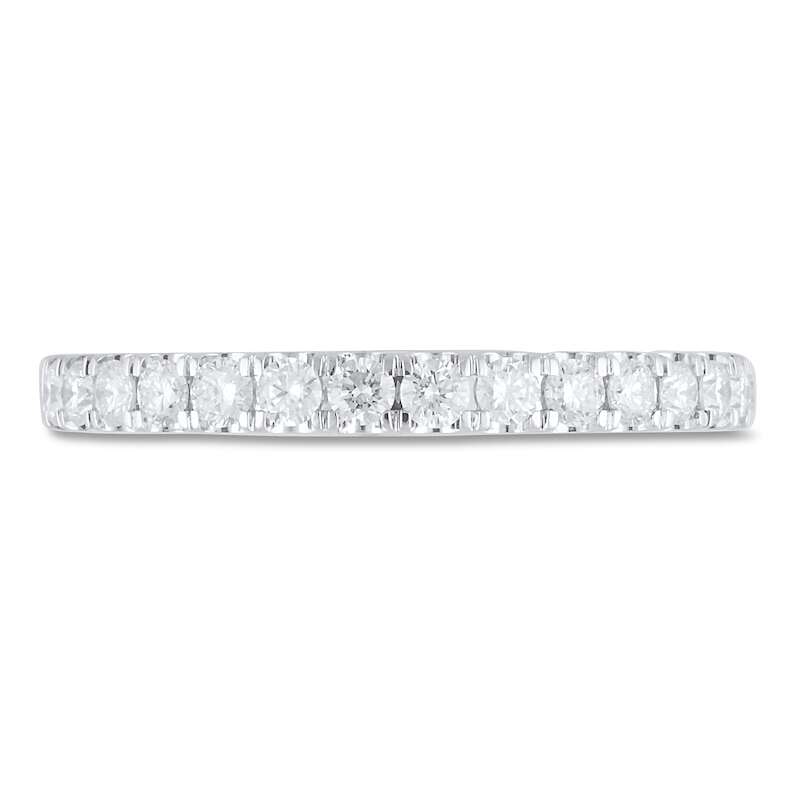 This exquisite anniversary ring for her features a row of sparkling round-cut, independently-certified lab-created diamonds.