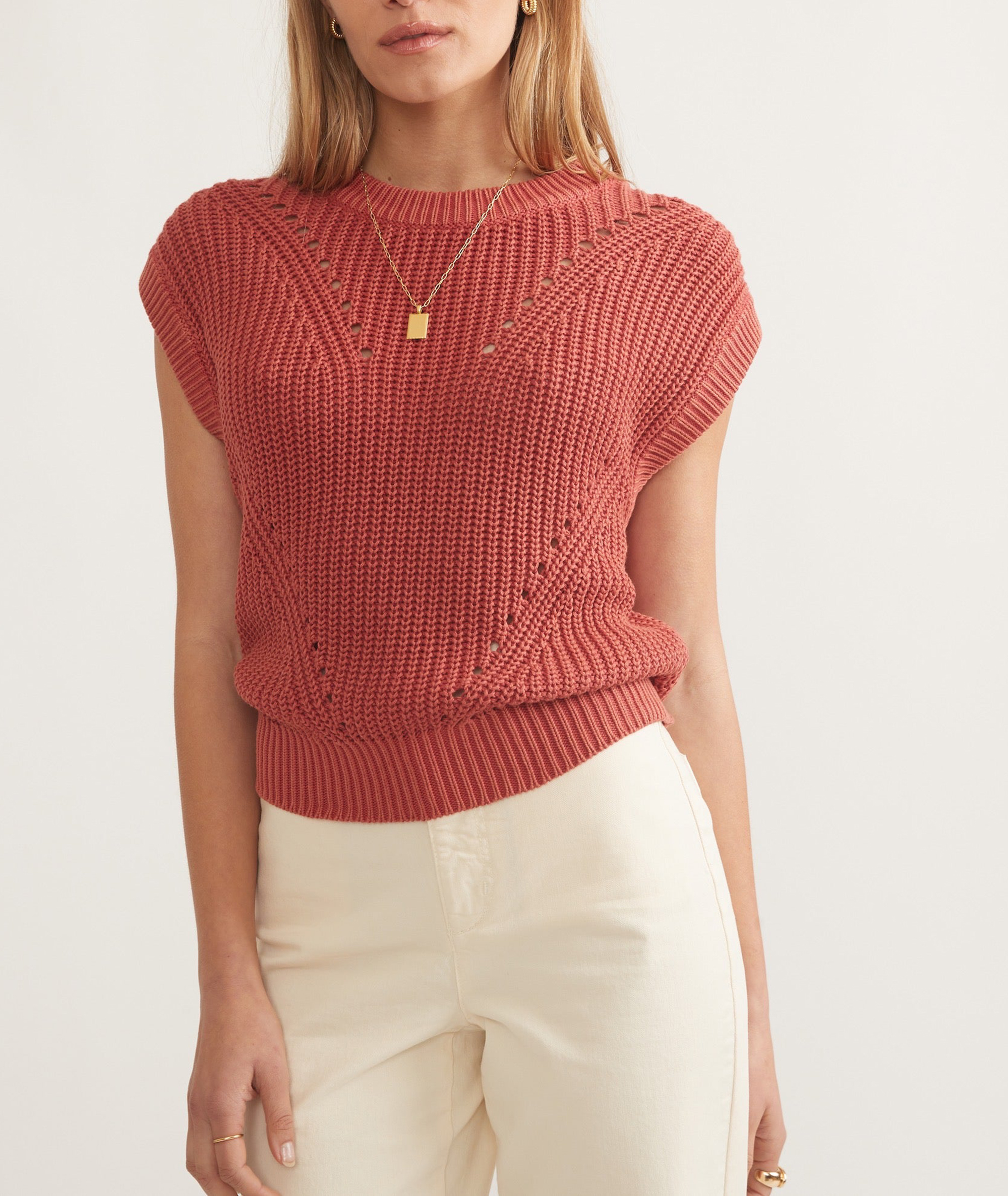 Sleeveless Knit Vest with Patterned Front