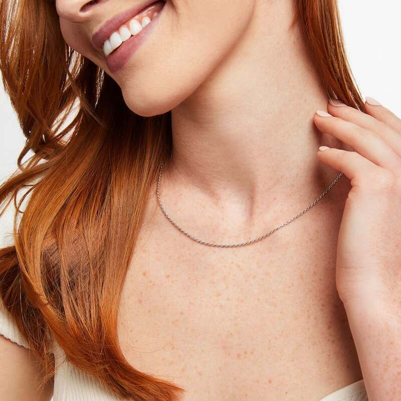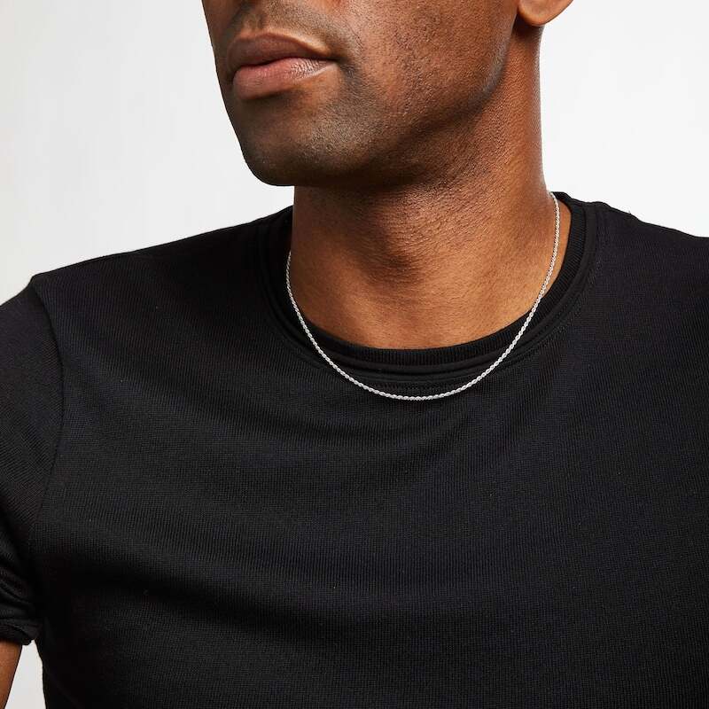 Featuring a diamond-cut finish, this 18-inch sterling silver solid rope chain offers classic simplicity. The chain is secured with a lobster clasp.