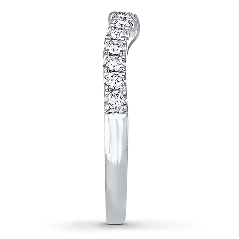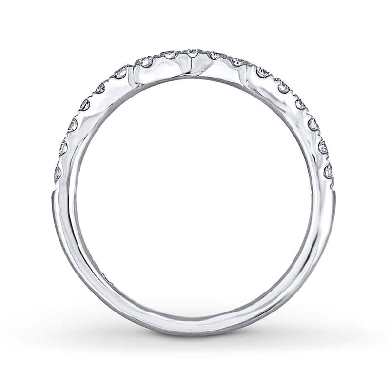 Round diamonds adorn this gorgeous 14K white gold THE LEO Diamond® wedding band, gently contoured to fit alongside her matching engagement ring (sold separately). The ring has a total diamond weight of 3/8 carat.