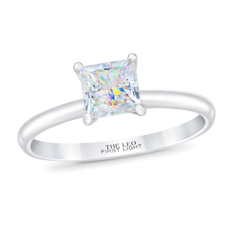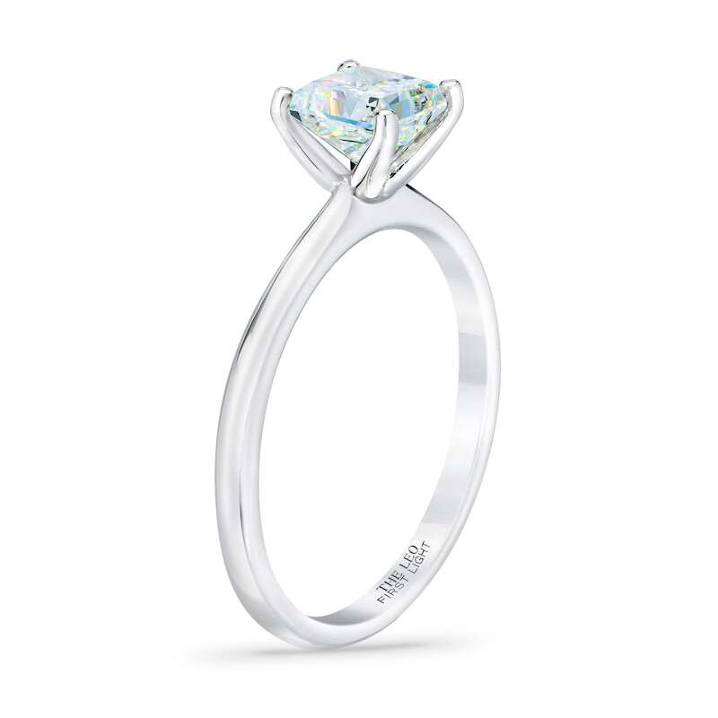 A breathtaking 1-carat princess-cut First Light® diamond is the center of attention in this timeless engagement ring for her. From Leo Schachter, the independently-certified diamond